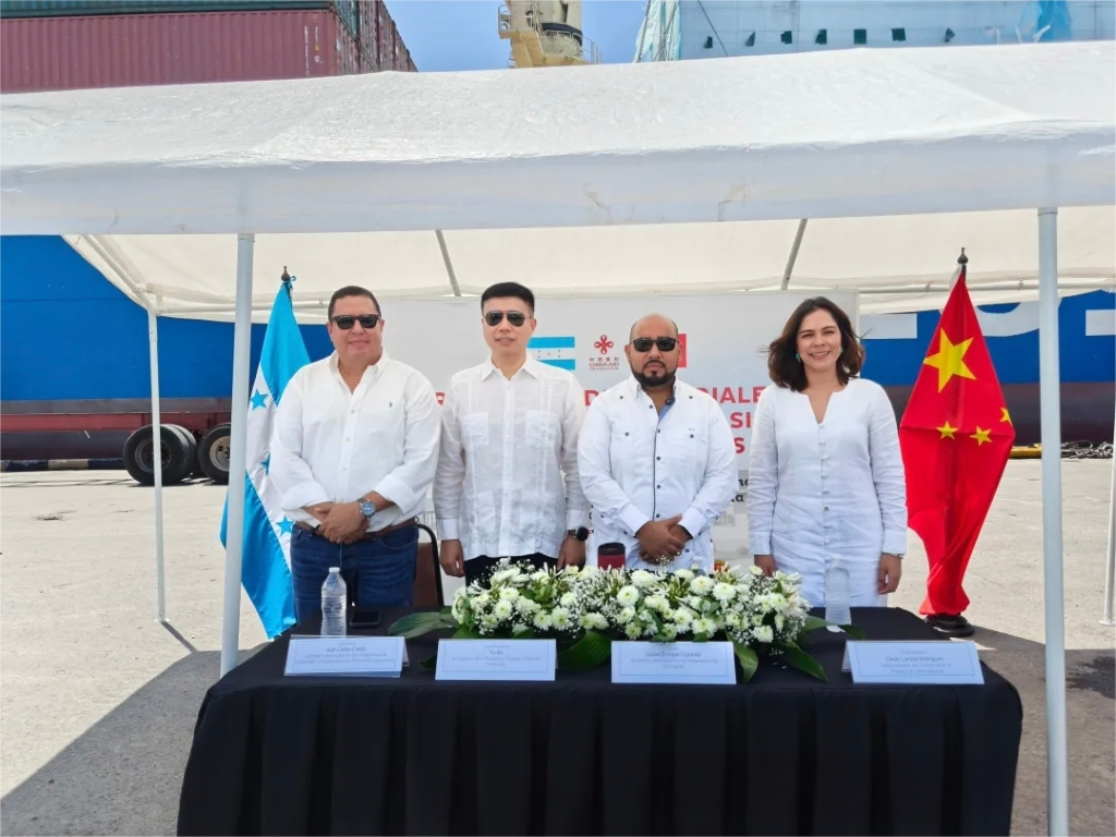 2025年5月20日,援洪都拉斯农业学校项目物资抵港仪式在洪南部埃内坎港举行。中国驻洪都拉斯大使于波,洪教育部长埃斯庞达、项目发展和监督部长科埃略、副外长罗德里格斯等出席。