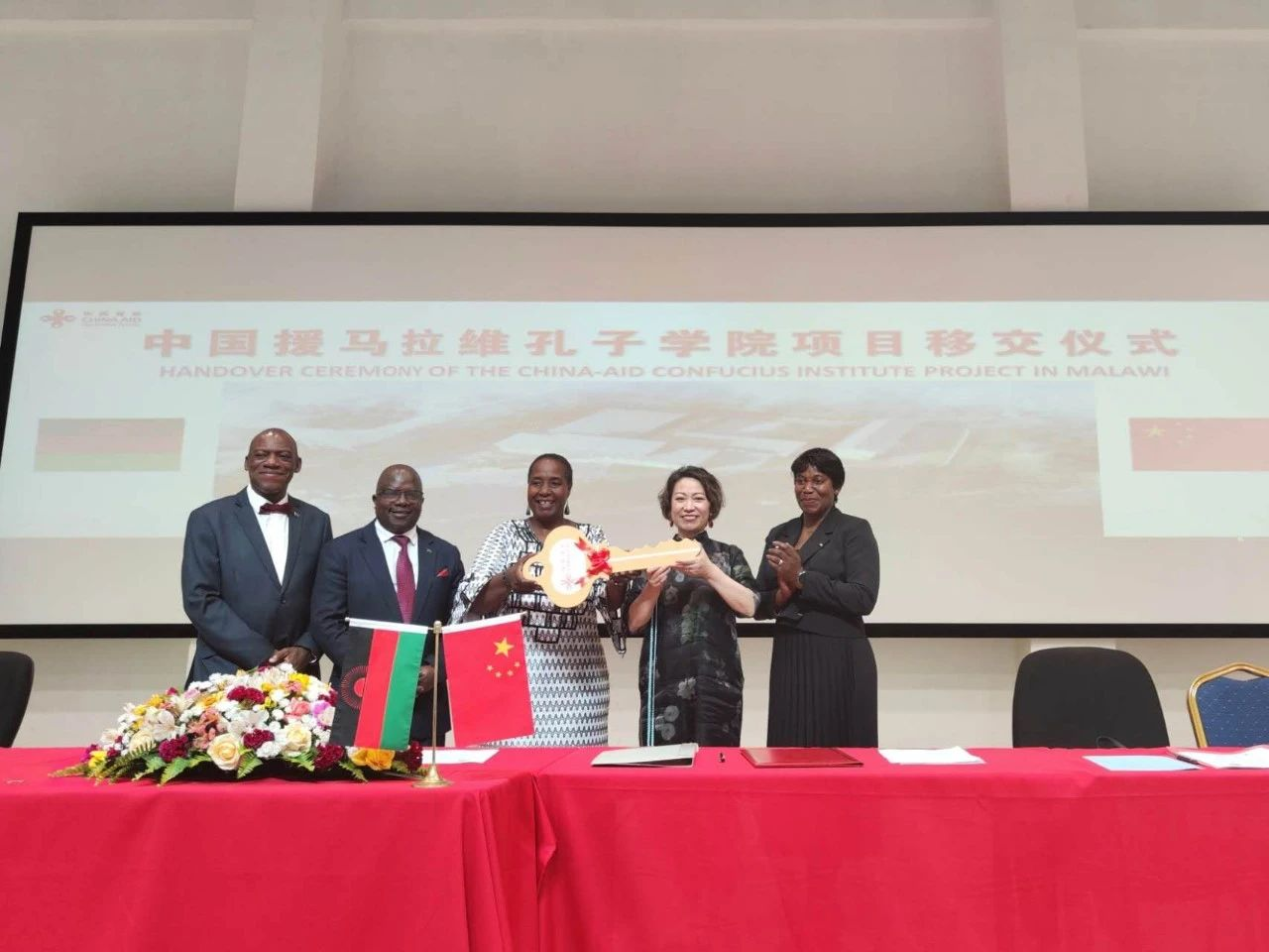 5月23日,援马拉维大学孔子学院项目移交仪式在马拉维首都利隆圭市举行,陆旭大使和马拉维高等教育部长卡布维拉共同签署交接证书。