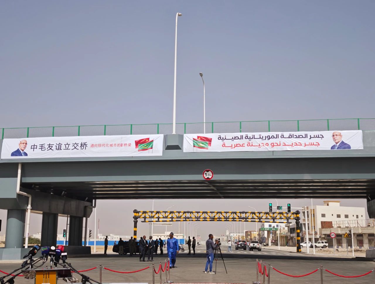 2025年5月15日,中国援毛里塔尼亚中毛友谊立交桥项目竣工仪式在毛里塔尼亚首都努瓦克肖特举行。毛里塔尼亚总统加兹瓦尼与中国驻毛里塔尼亚大使唐中东出席并剪彩。