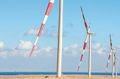 苏伊士湾风电项目位于埃及首都开罗以南约300公里的苏伊士湾西岸小镇拉斯·加里卜。项目共有77台风电机组,建成后预计每年可生产约27亿千瓦时的清洁电力,实现二氧化碳减排约100万吨。