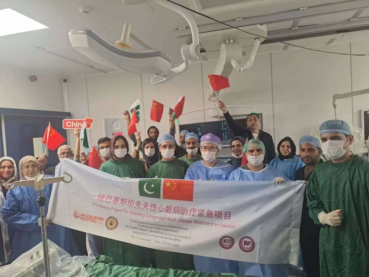 2025年1月22日至23日,援巴基斯坦先天性心脏病治疗紧急项目在巴圆满完成,项目实施单位中国医学科学院阜外医院团队在巴方医护人员配合下,为8名当地先天性心脏病患儿成功实施手术,巴社会各界反响热烈。