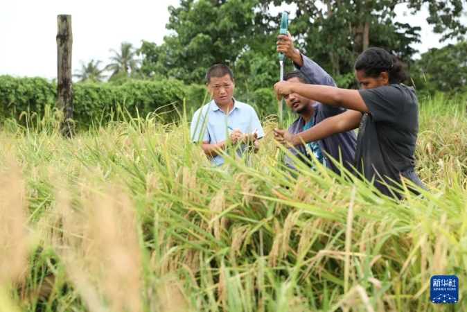 三月的斐济正值雨季。连续数日的暴雨过后,中国专家陈华早急切地赶到田里查看水稻情况。