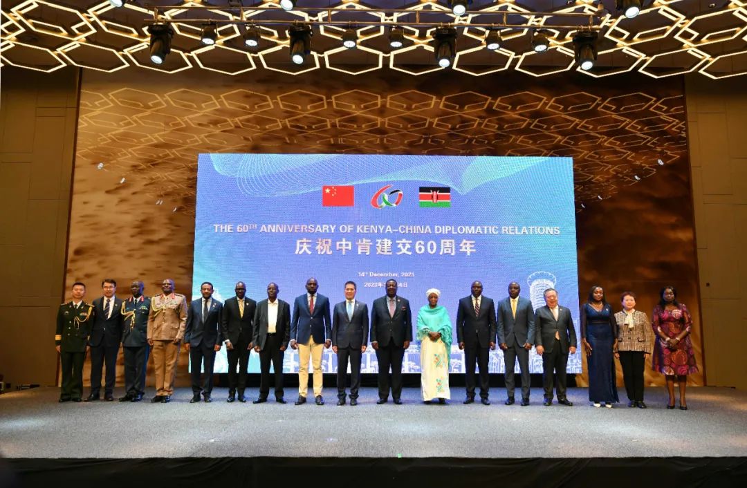 肯尼亚政府与中国驻肯尼亚大使馆14日在内罗毕举行庆祝肯中两国建交60周年招待会,肯内阁首席部长兼外长和侨务部长穆达瓦迪,以及外国驻肯使节、中资机构和肯方各界代表等约500人出席活动。