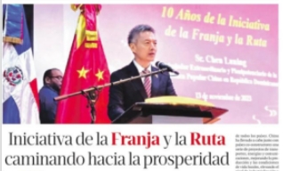 2023年11月20日,驻多米尼加大使陈鲁宁在多最大报《里斯汀报》发表题为《“一带一路”倡议——走向繁荣之路》署名文章,介绍“一带一路”倡议理念愿景和十年成就,宣介第三届“一带一路”国际合作高峰论坛重要成果,强调中方愿同包括多米尼加在内的各国一道,推动高质量共建“一带一路”,携手迈向现代化。全文如下: